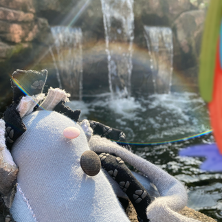 This week, I have try out another way of taking photo. I try to create a space myself instead of taking photo at the garden. I use the shower to create a space which looks like waterfall. I put the dolls under the shower so that I can create a scene about they are living in the waterfall. Not only that, I have also try to use different lighting to create different space. I use the plastic bag and touch light to create different colour of light. And here are the outcome for my photos: